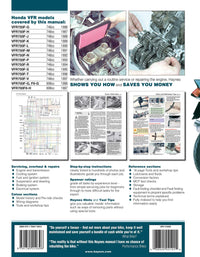 Haynes Motorcycle Repair Manuals make it easy to keep your Honda VFR750 & 700 V-Fours (1986-1997) in top condition. Each manual is based on a full stripdown and rebuild, giving you clear, step-by-step motorcycle repair instructions you can trust. With hundreds of detailed photos and expert guidance, you’ll handle everything from routine motorcycle maintenance to complex DIY motorcycle repairs.